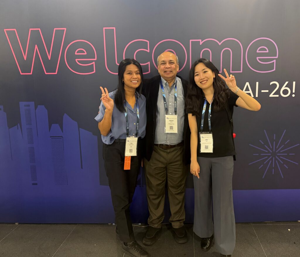 Joining Ashok at the 40th Annual AAAI Conference on Artificial Intelligence in Singapore was current DILab member Erik Goh and former members Jisu Kim and Ida Camacho.